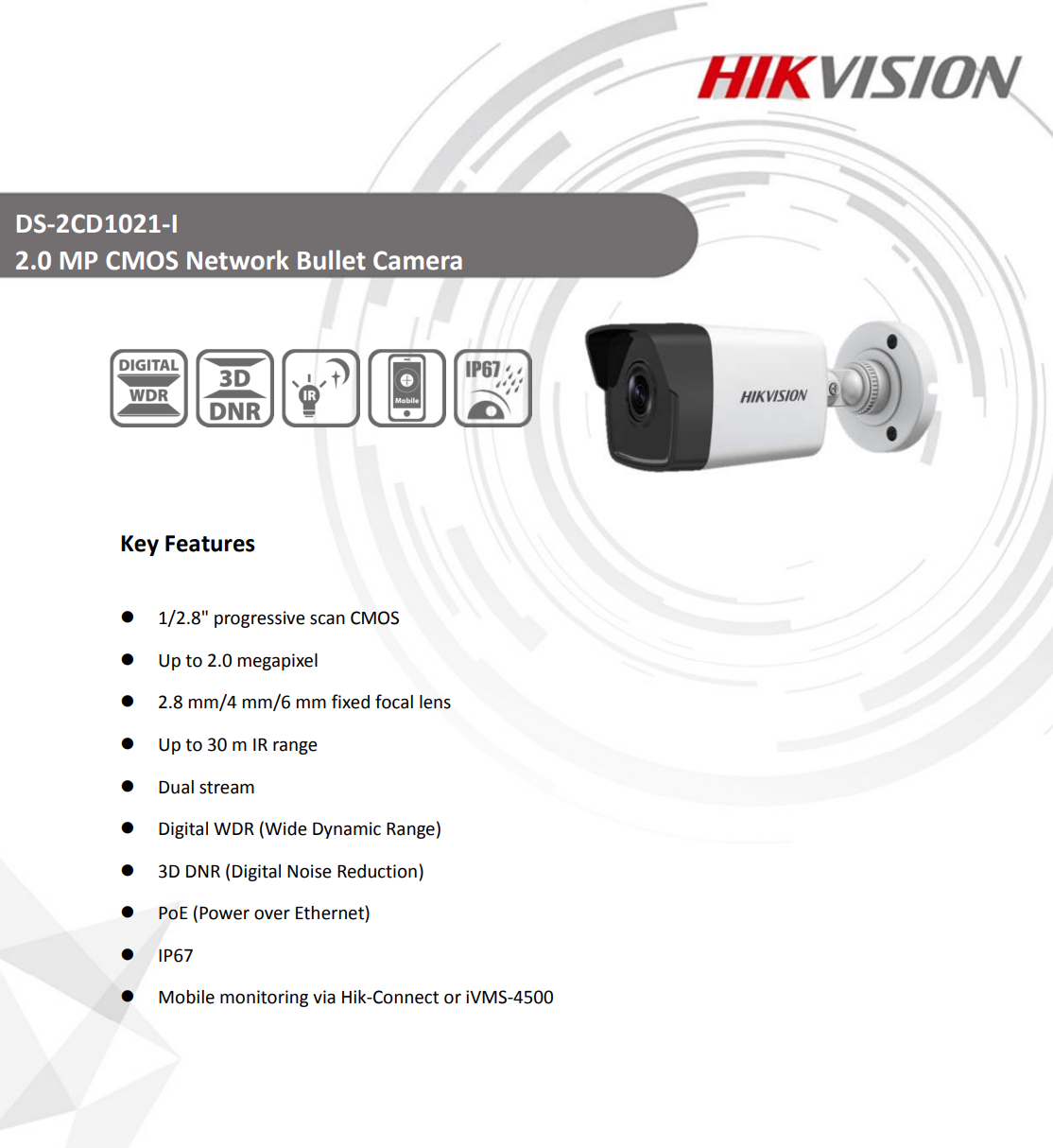 DS-2CD1021-I از استاندارد فشردهسازی H.264+ پشتیبانی میکند تا حجم داده و پهنای باند را کاهش دهد.