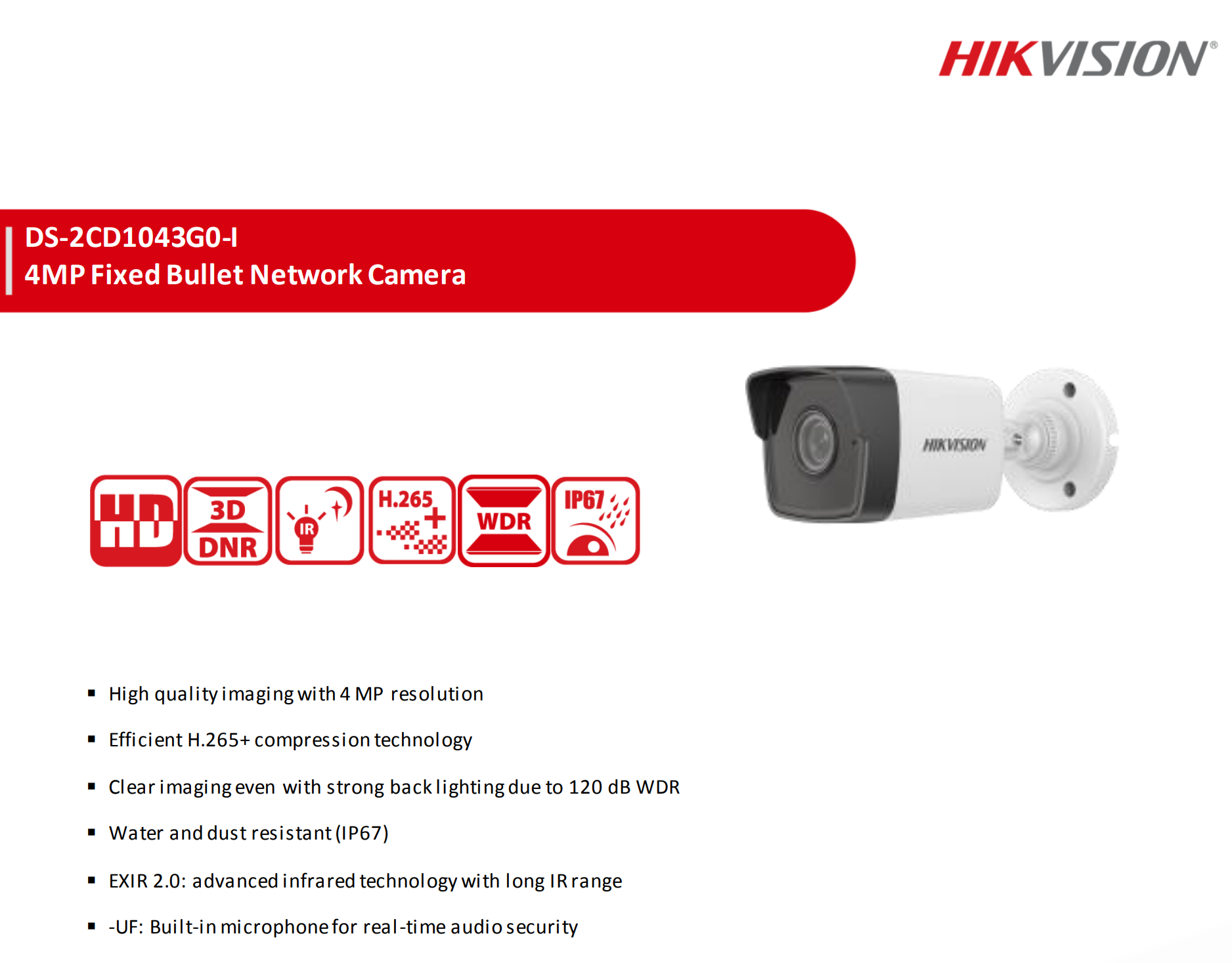 دوربین بولت تحت شبکه Hikvision DS-2CD1043G0-I از سری Value، یکی از پرفروشترین مدلهای اقتصادی هایکویژن است که با وضوح 4 مگاپیکسل (2560×1440)، طراحی فشرده و بدنه مقاوم IP67، برای نصب در محیطهای داخلی و بیرونی گزینهای مطمئن محسوب میشود. فناوری فشردهسازی H.265+ باعث صرفهجویی چشمگیر در حجم ذخیرهسازی میشود.
